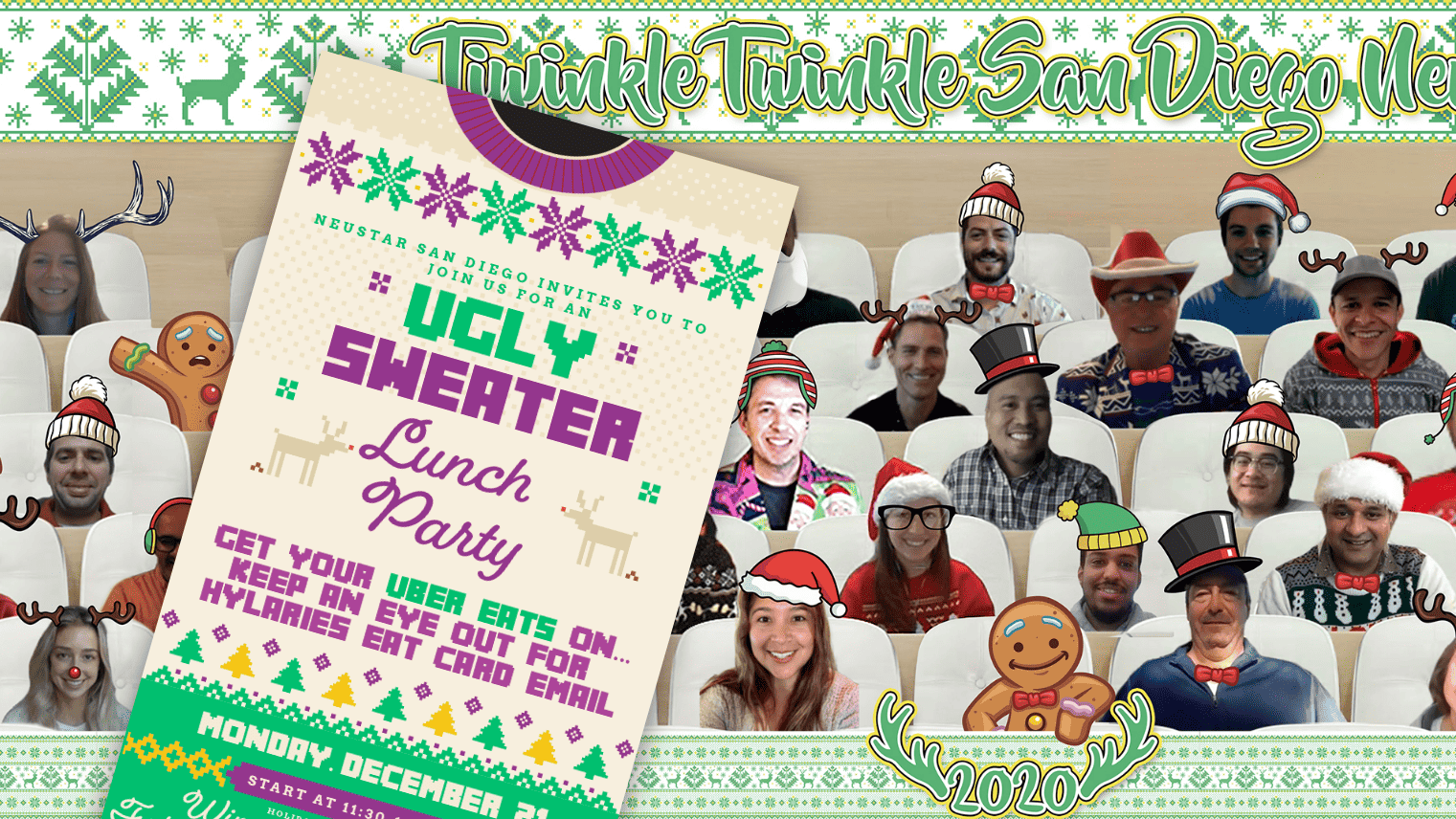 Every exceptional office has a holiday party; nothing that brings smiles to the team is quite like an ugly sweater party. Design can bring some fun to the simplest of events. Design can also provide themes, ideas, and style. The graphic design for this particular event was themed using a wool sweater pattern, giving it both a handmade video and a digital pixel vibe. Even though the event was for a winter holiday, I could hide a few easter eggs, more like a few reindeer pellets.
