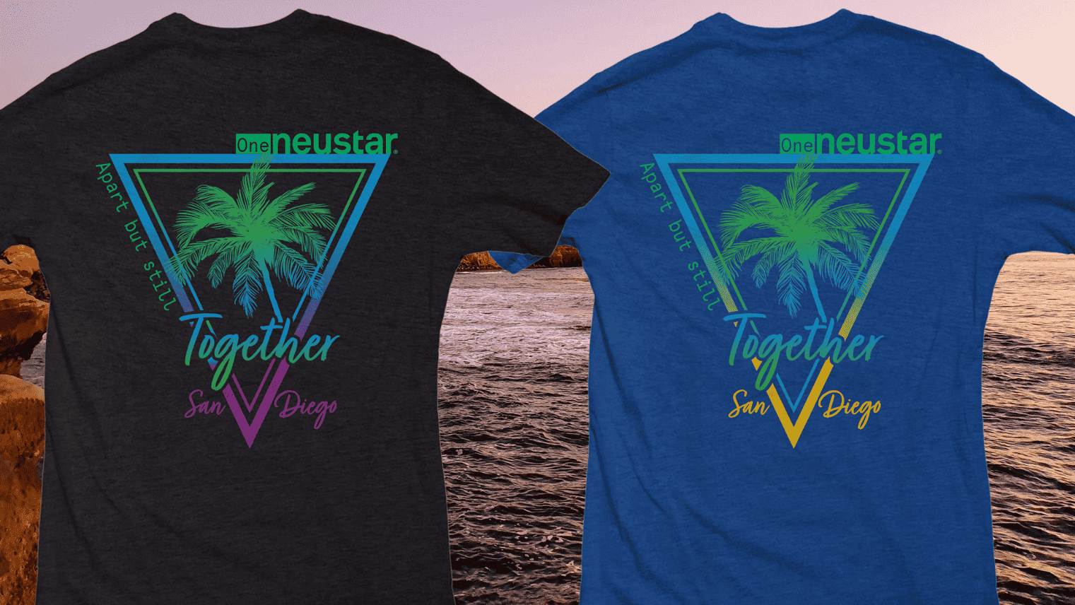 When the pandemic hit, it almost sounded like a dystopian movie; as office culture rapidly changed and my team was sent home, we decided we still needed to celebrate our culture. "Apart but still Together" was our theme, so I created a unique graphic for my San Diego team. So, I set out to create a shirt design that represented the Local Office Culture and still fit within our overall Brand. The Southern California vibes were strong, and the choice of fabric was exactly what our team expected. I delivered a soft tee, cool vibe graphics, and color options, and even ended up under budget, a total Win for the team.